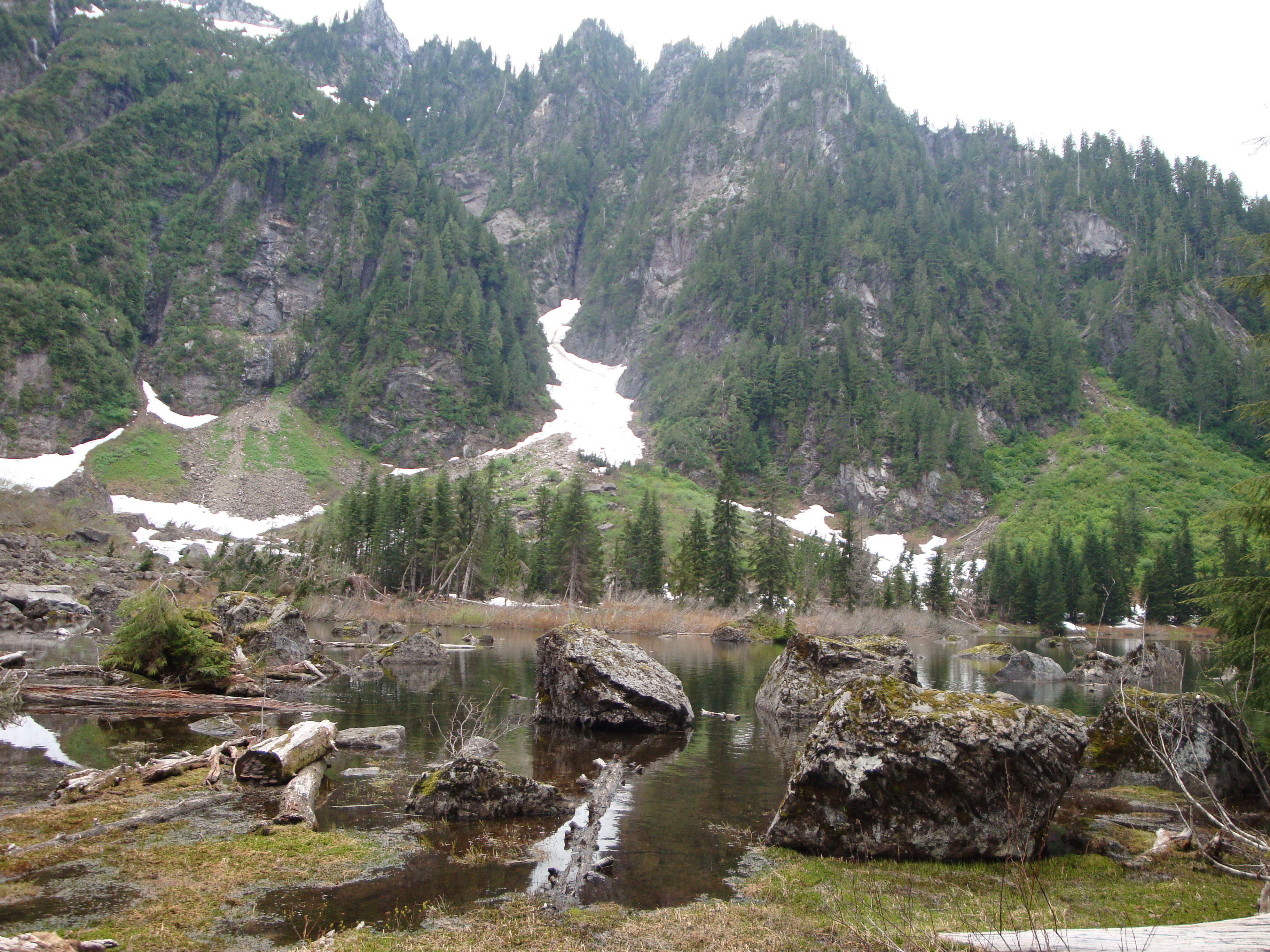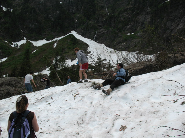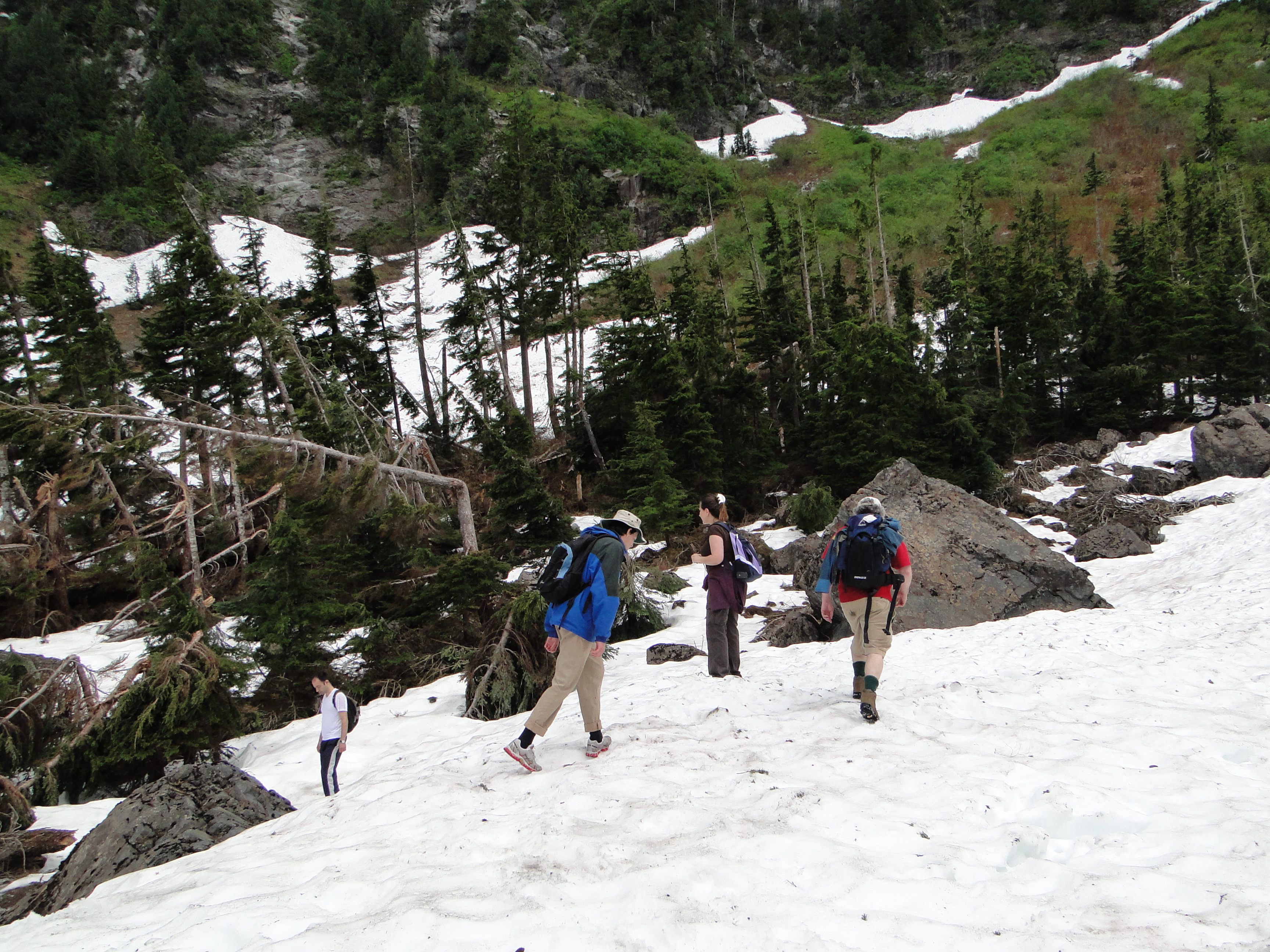 We hiked the Heather Lake trail on June 18, 2009. Thirteen folks made the trek and were rewarded with snow at the top.